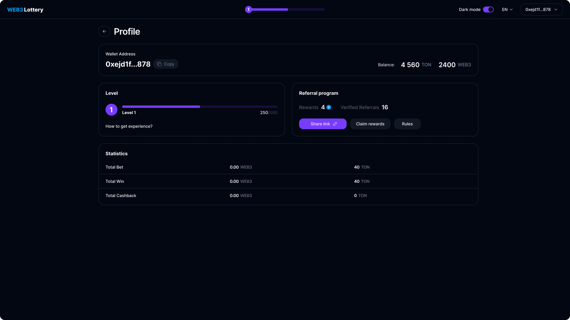 Сделали платформу Web3lottery на TON с игрой в формате быстрых розыгрышей: ставка на исход и мгновенный результат. Решили главную боль пользователей — сложность участия: интерфейс максимально упрощён, выигрыши зачисляются сразу, без клейма и ожиданий.