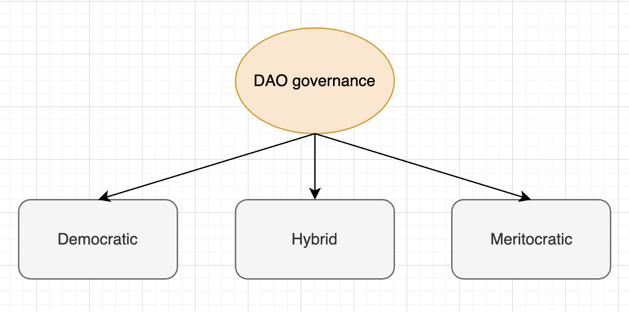 Структура управления в DAO определяется степенью влияния на принимаемые решения каждым участником организации. Может быть демократической, меритократической или комбинацией первых двух вариантов.