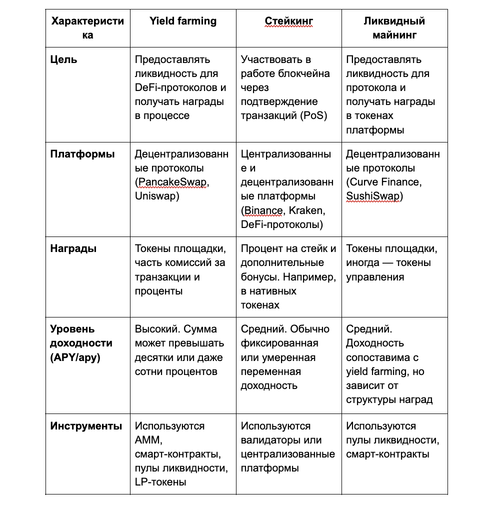 Отличие от стейкинга и ликвидного майнинга