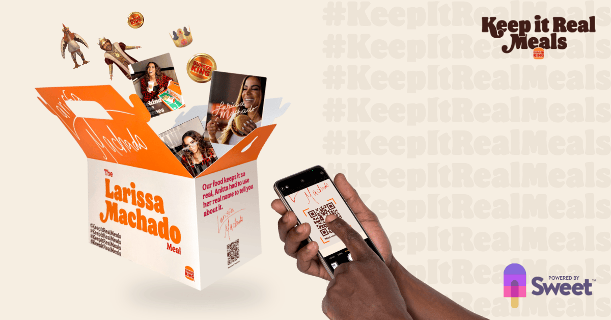 Куар-коды, размещенные на коробках с фастфудом, открывают гостям закусочных Burger King доступ к привилегиям. Источник: realmeals.sweet.io
