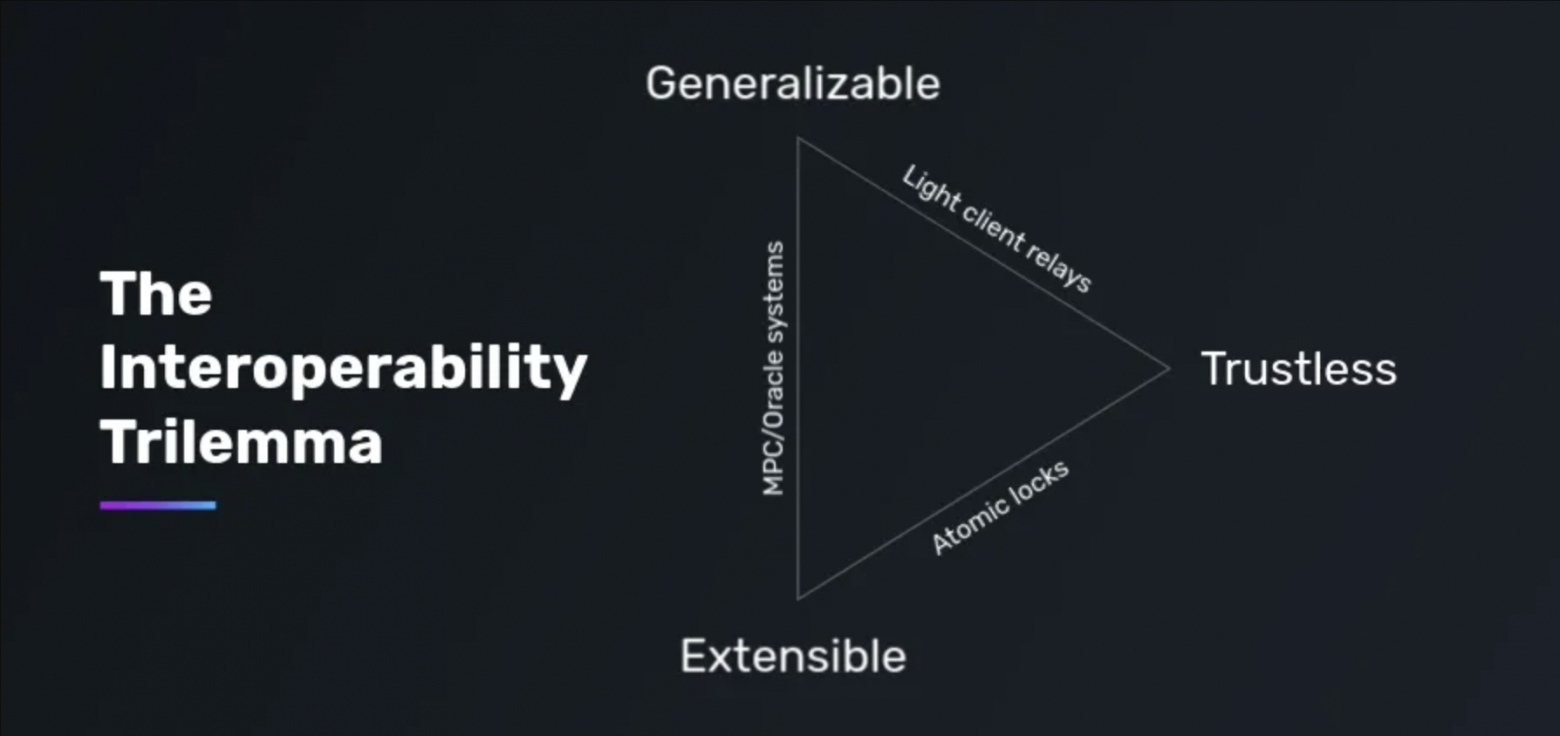 Всё становится несколько сложнее, потому что, как правило, именно в верификаторах и том, как они взаимодействуют с приложениями, кроются основные различия мостов. В контексте разработки различных конструкций мостов существует такое понятие, как трилемма интероперабельности, которая гласит, что протоколы интероперабельности или мосты могут обладать только двумя из следующих трёх свойств:
