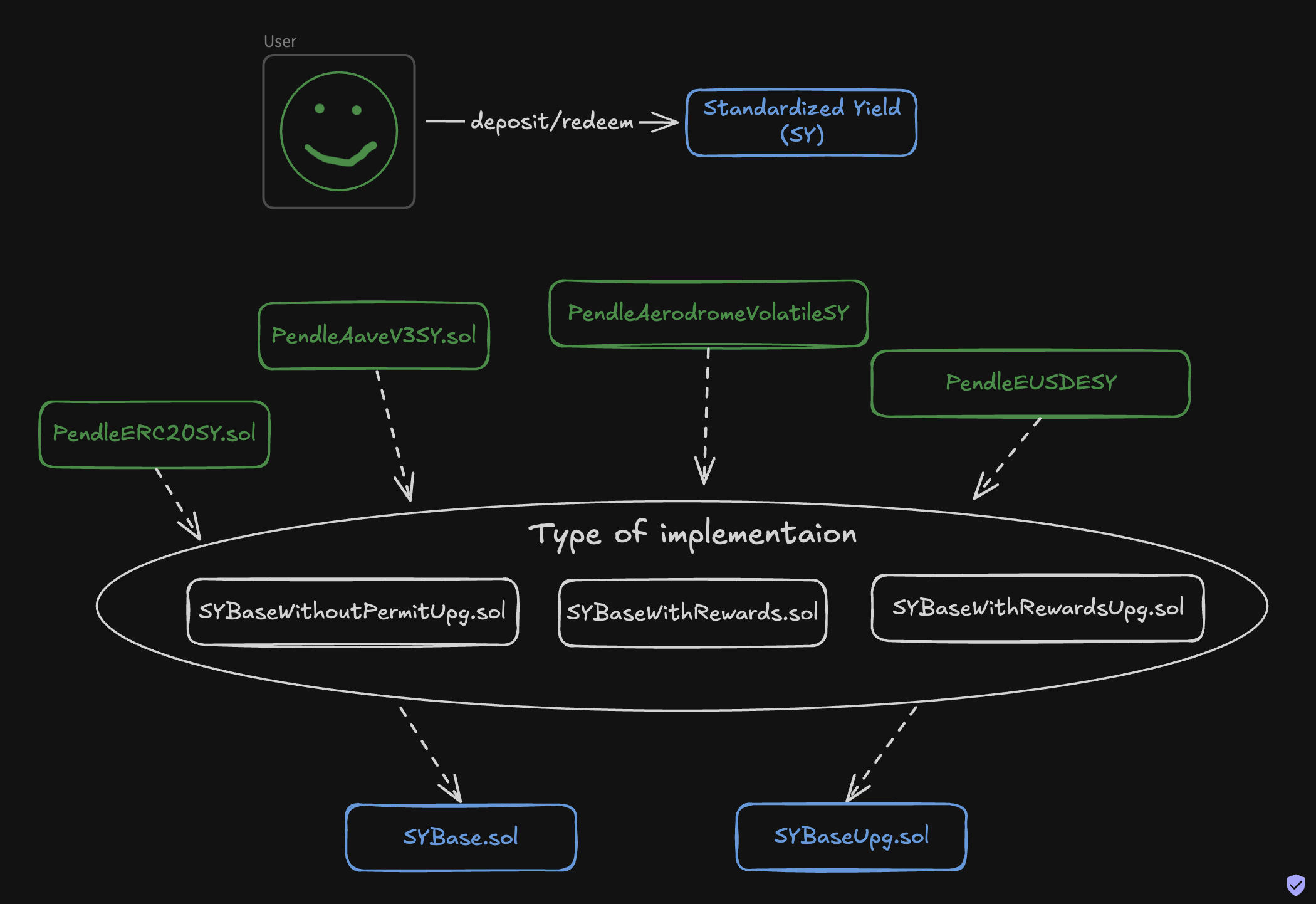 Протокол вводит аббревиатуру SY (Standardized Yield token) для обертки. Например, SY-stETH - это обертка для stETH.