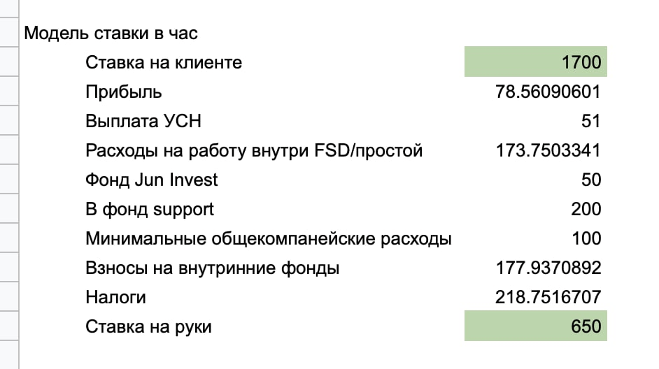 Кроме налогов и взносов, в стоимость часа разработчика входят все обязательные ежемесячные расходы компании: аренда и содержание офиса, закупка оборудования, обучение специалистов, прибыль инвесторов, реклама, простои сотрудников, генерирующих выручку. Это упрощенный расчет, но в целом все работает примерно так.