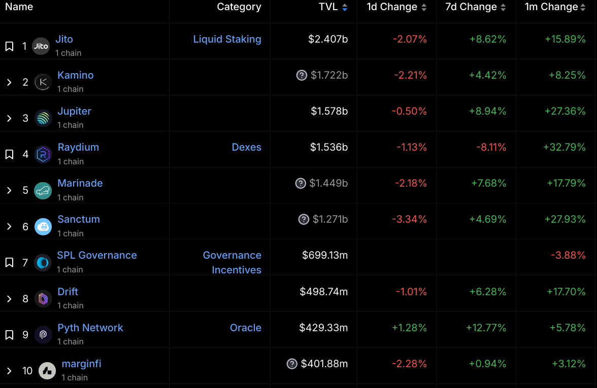 Среди топ-10 крупнейших DeFi-протоколов на Solana: