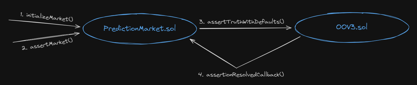 узнаем, когда оракул рассчитает событие и будет готов сообщить нам, что наше утверждение верно. Время вспомнить про callbacks, которые оракул умеет делать. Поэтому нам достаточно реализовать один из таких callback, под названием assertionResolvedCallback(). Когда утверждение будет проверено оракулом, он сделает обратный вызов.